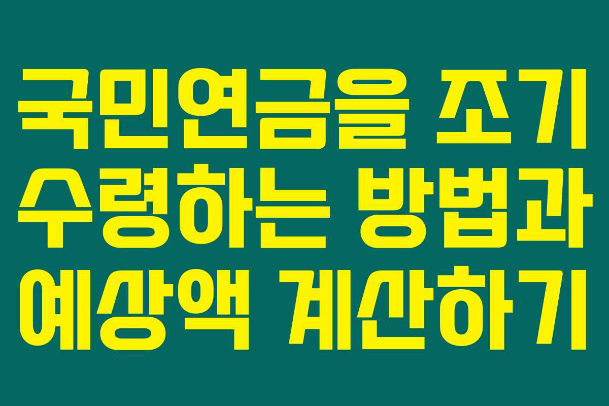 제가 직접 알아본 바로는 국민연금 조기 수령은 많은 분들이 재정적인 필요나 개인적인 상황에 맞춰 선택하는 중요한 옵션이랍니다. 최근 개정사항에 따라 조기 수령의 조건과 예상액 계산 방법이 조금 달라졌어요. 이 부분에 대해 여러분들에게 조금 더 자세히 설명드리겠습니다. 아래를 읽어보시면 국민연금의 조기 수령 조건, 예상액 계산 방법 및 신청 절차에 대해 알차게 정리해 두었습니다.