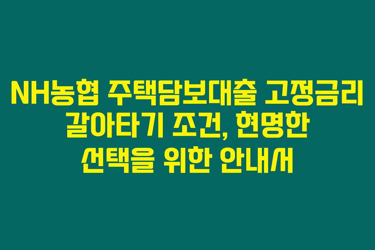제가 직접 체크해본 바로는 NH농협에서 제공하는 주택담보대출 고정금리 갈아타기 조건은 여러 금융상품 중에서도 상대적으로 안정적인 선택지가 될 수 있습니다. 이 글에서는 NH농협의 고정금리 대출 상품과 전환 시 고려해야 할 조건들에 대해 다뤄보도록 할게요. 아래를 읽어보시면 NH농협의 고정금리 대출 갈아타기의 장점과 필요한 자격조건에 대해 보다 명확하게 알 수 있을 거예요.