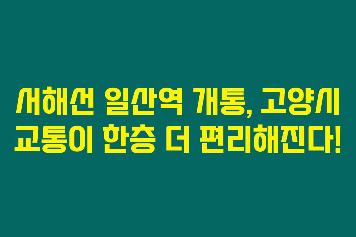 제가 알아본 바로는, 2023년 8월 26일 서해선이 일산역까지 연장 개통됐다는 소식은 고양시민들에게 큰 변화와 혜택을 안겨줄 전망이에요. 이번 개통으로 수도권 서부지역과의 연결이 강화되고, 고양시의 교통여건이 한층 개선될 것으로 기대하고 있어요. 아래를 읽어보시면 고양시의 서해선 일산역 개통의 모든 사실과 향후 기대되는 변화들에 대해 자세하게 설명드릴게요.