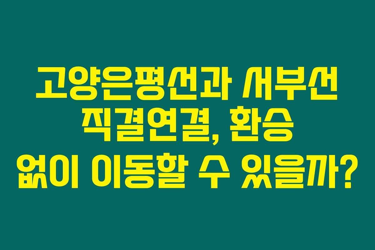 제가 직접 확인해본 결과, 고양은평선과 서부선의 직결연결이 추진되고 있어 환승 없이 편리하게 이동할 수 있는 가능성이 높아지고 있습니다. 이번 프로젝트는 고양 창릉 3기 신도시 광역교통대책의 일환으로, 양 노선이 어떤 방식으로 연결될지에 대한 논의가 진행되고 있습니다. 아래를 읽어보시면 고양은평선과 서부선의 직결연결에 대한 핵심 내용과 그 중요성을 자세히 알아보실 수 있습니다.