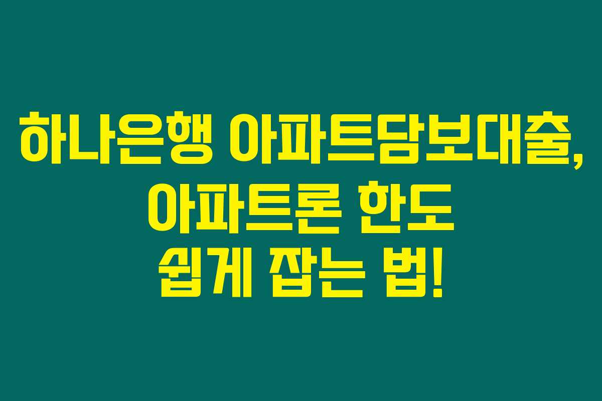 제가 직접 알아본 바로는, 하나은행의 아파트담보대출은 아파트를 담보로 쉽게 자금을 융통할 수 있는 방법이에요. 요즘 많은 사람들이 금리와 한도 문제로 고민하고 있는데, 아파트론과 함께 신중하게 접근하면 원하는 한도를 쉽게 받을 수 있답니다. 아래를 읽어보시면 대출 신청의 전반적인 내용을 이해하는 데 도움이 될 거예요.