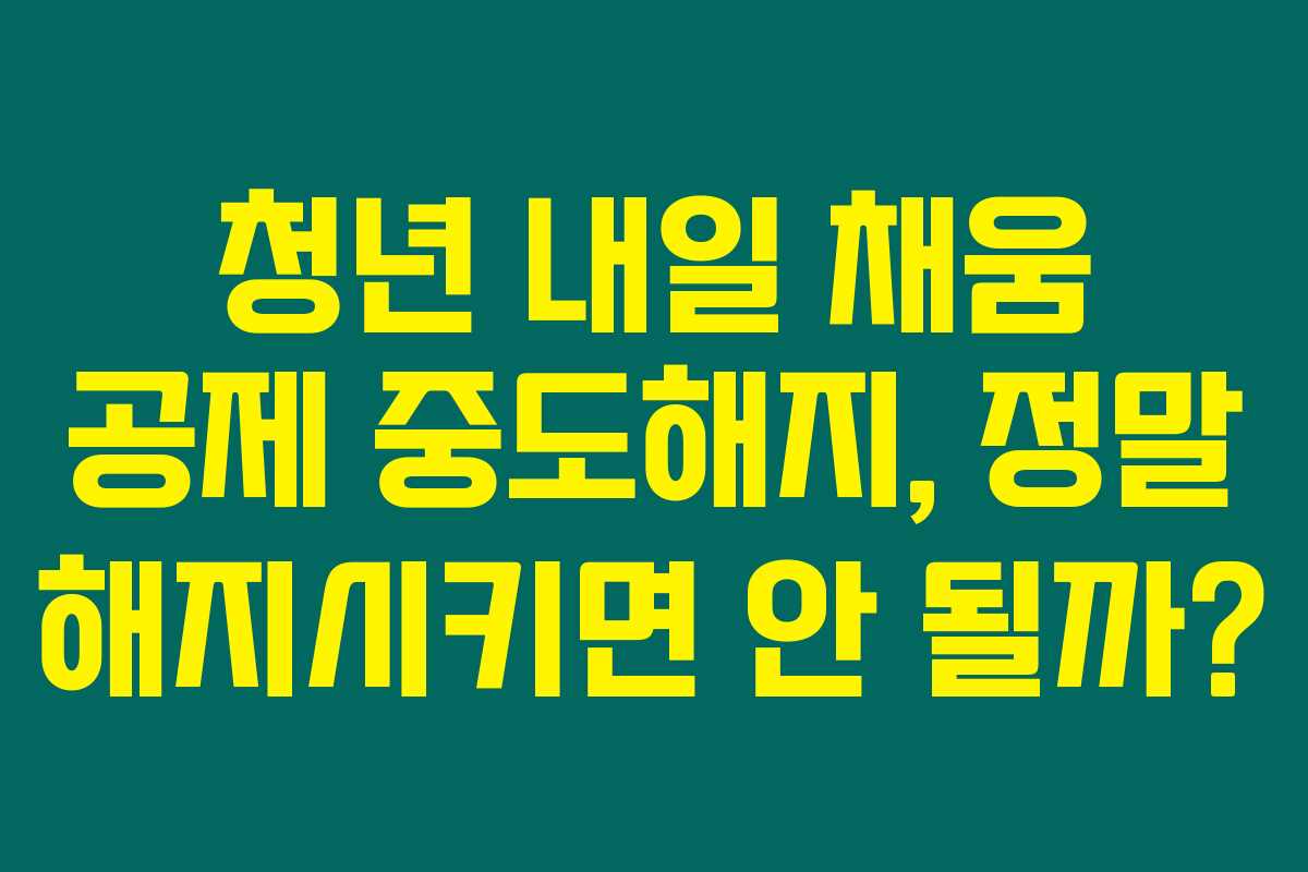 제가 알아본 바에 따르면, 청년 내일 채움 공제는 젊은 세대를 위한 훌륭한 재정 지원 제도입니다. 그러나 때때로 예상치 못한 사정으로 중도해지를 고민하는 분들이 많습니다. 아래를 읽어보시면, 중도해지의 조건, 방법 그리고 해지 후 환급금에 대한 정보를 알아보실 수 있을 거예요.