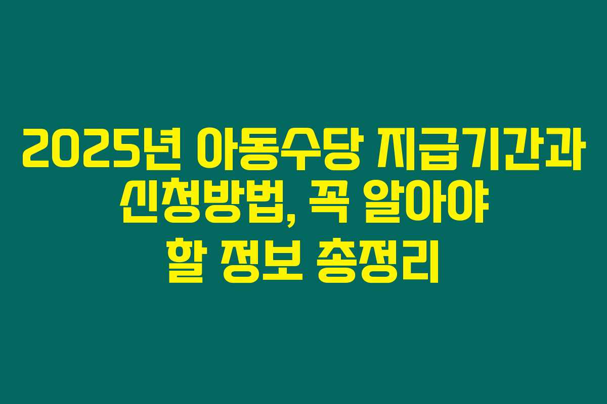 2025년 아동수당은 매월 25일에 보호자 명의의 계좌로 입금됩니다. 만약 지급일이 주말이나 공휴일인 경우에는 그 전 영업일에 지급되니 주의가 필요합니다.