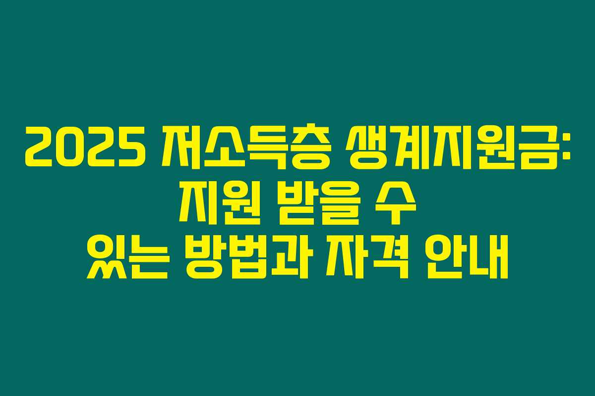 2025 저소득층 생계지원금의 지원 자격은 무엇인가요?