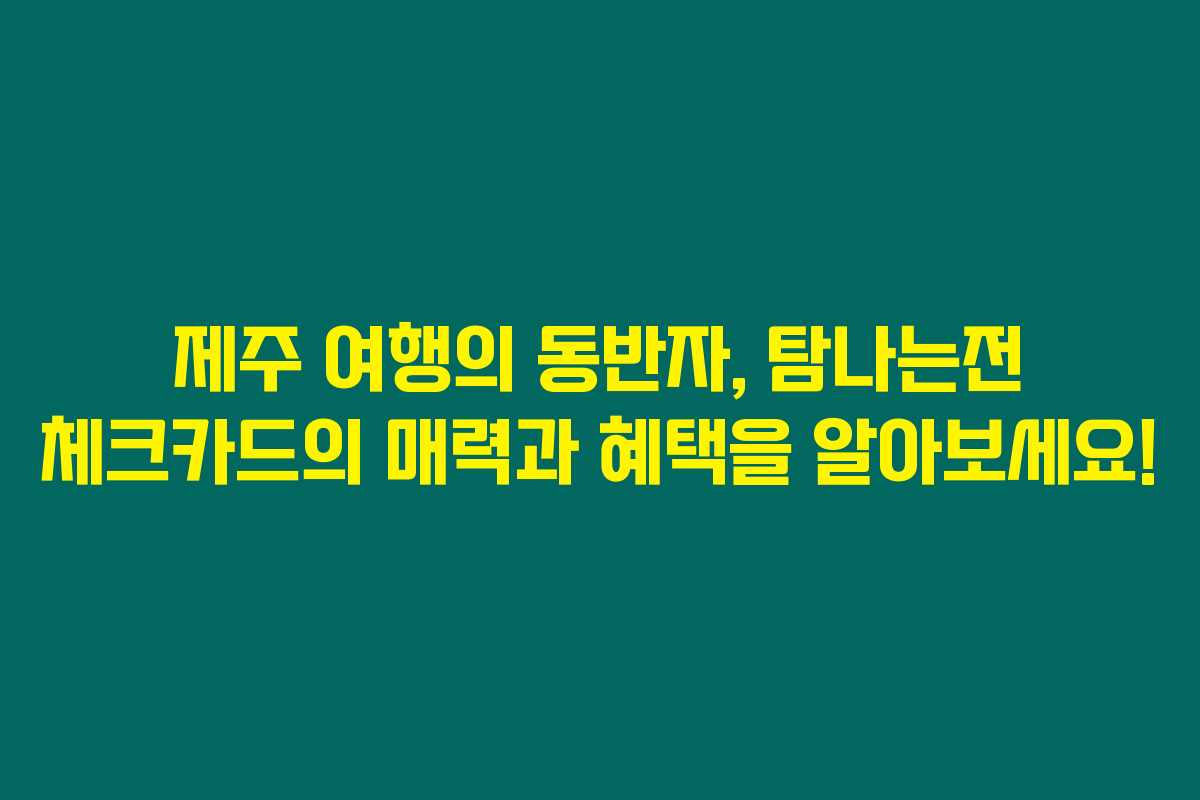제가 직접 경험해본 결과로는 제주 여행 때 꼭 알아야 할 카드, 바로 탐나는전 체크카드입니다. 이 카드는 제주도 특화된 혜택들로 가득 차 있어, 제주 여행을 더욱 풍요롭게 만들어주죠. 아래를 읽어보시면 이 카드의 발급 방법과 다양한 이용 혜택을 확인할 수 있습니다.