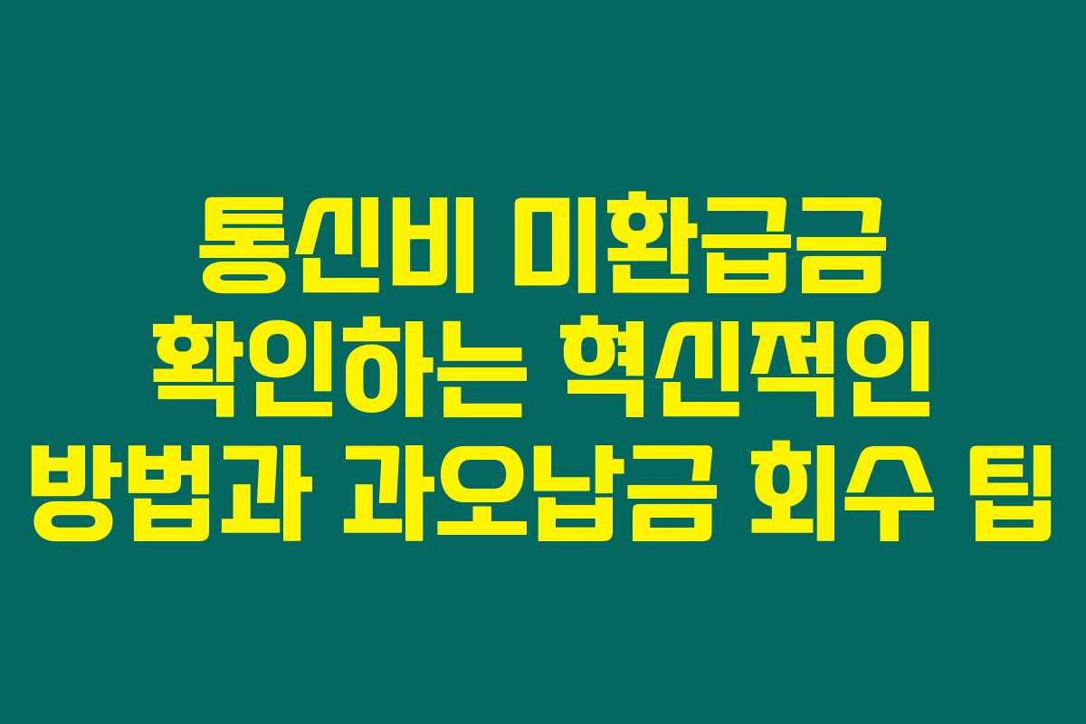 제가 직접 경험해본 결과로는, 통신비 미환급금은 많은 사람들이 놓치고 있는 기회입니다. 여러분도 과오납금이 있을 수 있으니, 통신비 미환급금을 쉽게 조회하고 확인하는 방법을 알아보세요. 아래를 읽어보시면 이 유용한 정보가 어떻게 여러분의 재정에 도움이 될 수 있는지 확인하실 수 있습니다.