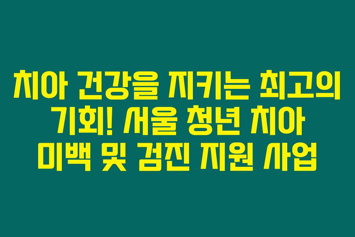 제가 알아본 바로는, 서울시에서 진행하는 청년 치아 미백 및 검진 지원 사업은 많은 청년들에게 필요한 기회를 제공하고 있습니다. 특히 19세에서 39세 사이의 청년들에게는 치아 건강은 물론 자신감까지 높일 수 있는 좋은 프로그램이죠. 아래를 읽어보시면 이 지원 사업에 대한 자세한 정보와 참여 방법을 알 수 있습니다.