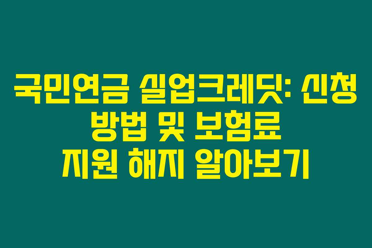 실업크레딧 신청은 국민연금공단 지사나 고용센터를 통해서 할 수 있으며, 온라인으로도 진행 가능합니다.