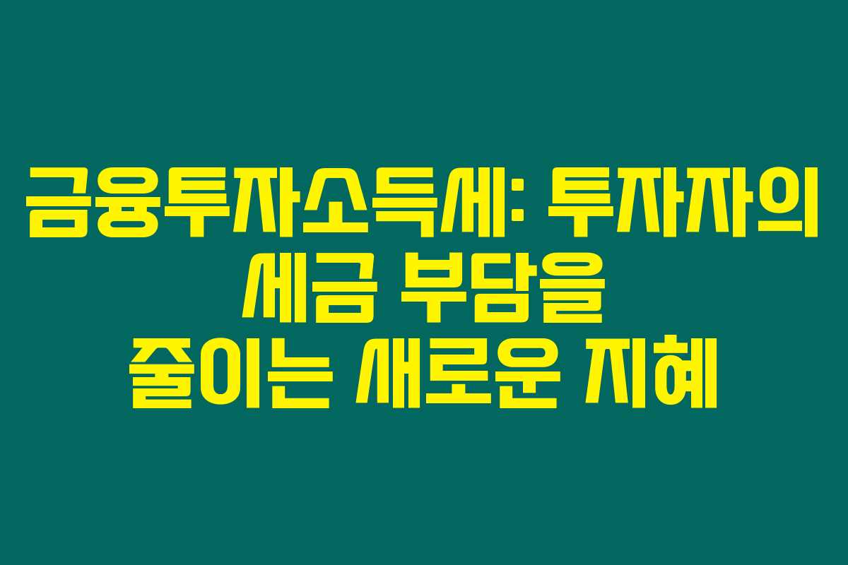 앞으로는 금융상품을 활용하며 세금 부담을 최소화 할 수 있는 방안을 고민하시오. 제가 경험한 바에 의하면, 금융투자소득세의 변화는 투자자가 다양한 금융 상품을 자유롭게 사용하며 안정적으로 운용할 수 있도록 도와줄 것입니다.