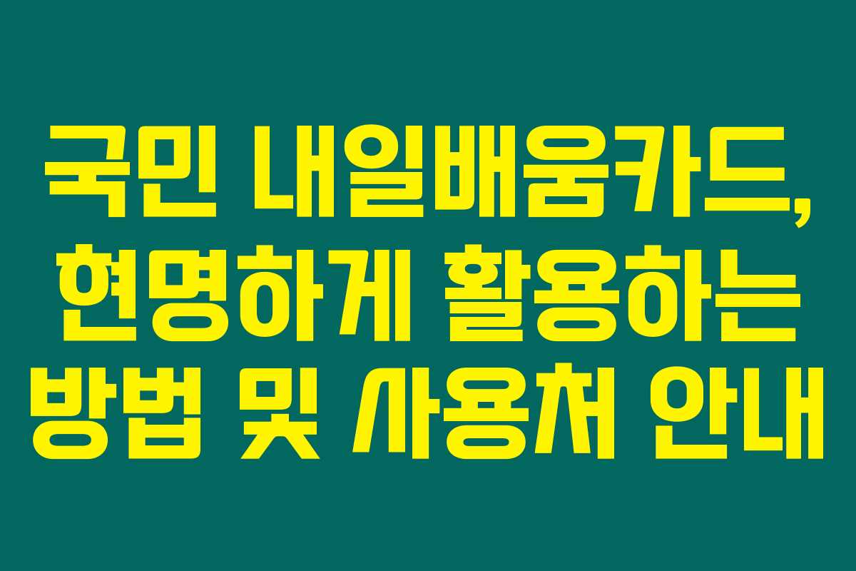 국민 내일배움카드는 많은 사람들에게 평생 학습의 기회를 제공하는 중요한 정책으로 자리 잡고 있습니다. 제가 경험해본 결과로는 이 카드는 교육이나 훈련을 통해 개인의 경제적 부담을 덜어주는 훌륭한 제도입니다. 과연 어떻게 활용할 수 있을까요? 아래를 읽어보시면, 국민 내일배움카드의 사용처와 방법에 대해 상세히 알려드리겠습니다.