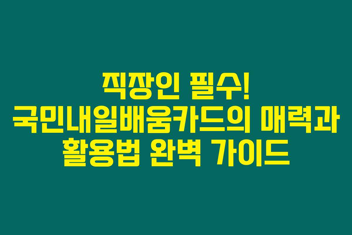 국민내일배움카드는 실업자 및 재직자에게 매우 유용한 제도입니다. 제가 사용해본 결과, 지속적인 자기계발에 큰 도움이 되었어요. 다양한 과정과 지원금을 통해 여러분도 경력 개발에 도전해보세요. 😊