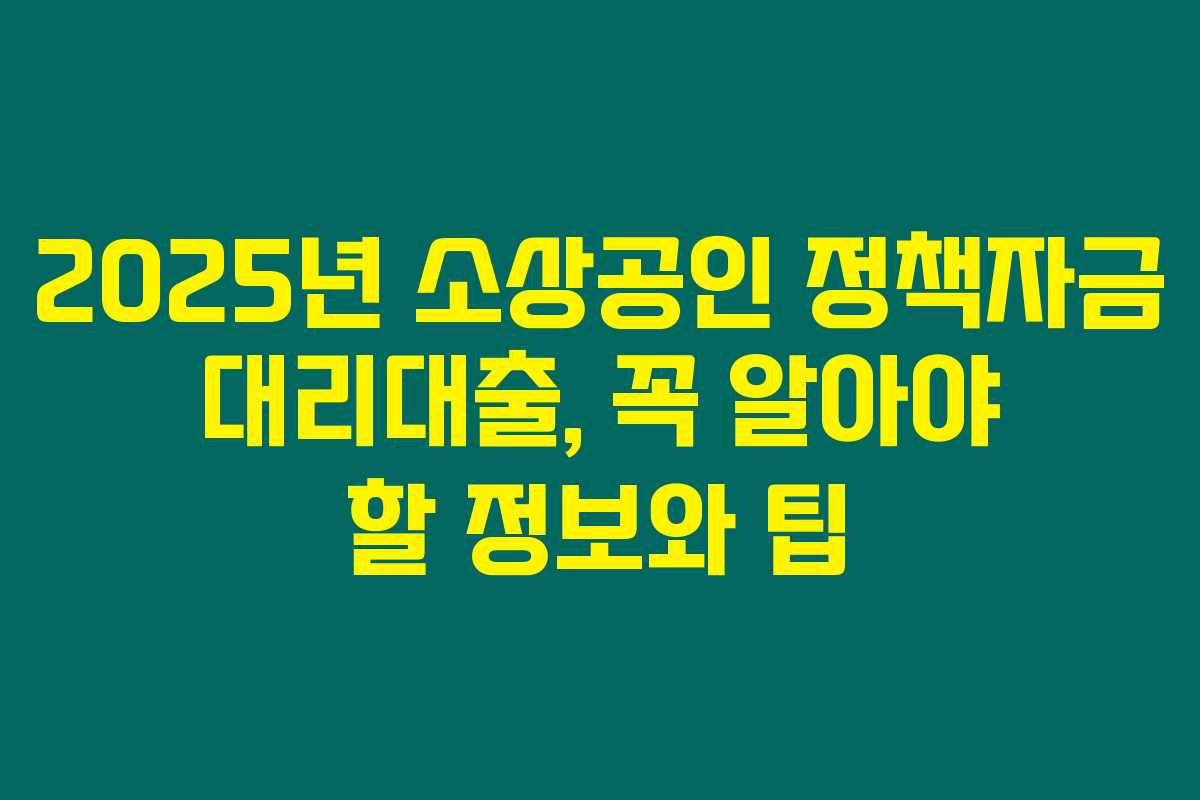 제가 직접 경험해본 결과로는, 2025년 소상공인 정책자금 대리대출이 새롭게 개선되어 정말 많은 소상공인에게 혜택을 제공할 것 같습니다. 정부가 마련한 금리 인하와 대출 한도 확대 등의 지원책은 특히 코로나19로 어려움을 겪고 있는 소상공인들에게 큰 도움이 될 것입니다. 아래를 읽어보시면 2025년 소상공인 정책자금 대리대출의 신청 조건, 절차 및 성공적인 대출을 위한 핵심 포인트에 대해 자세히 알아보실 수 있습니다.