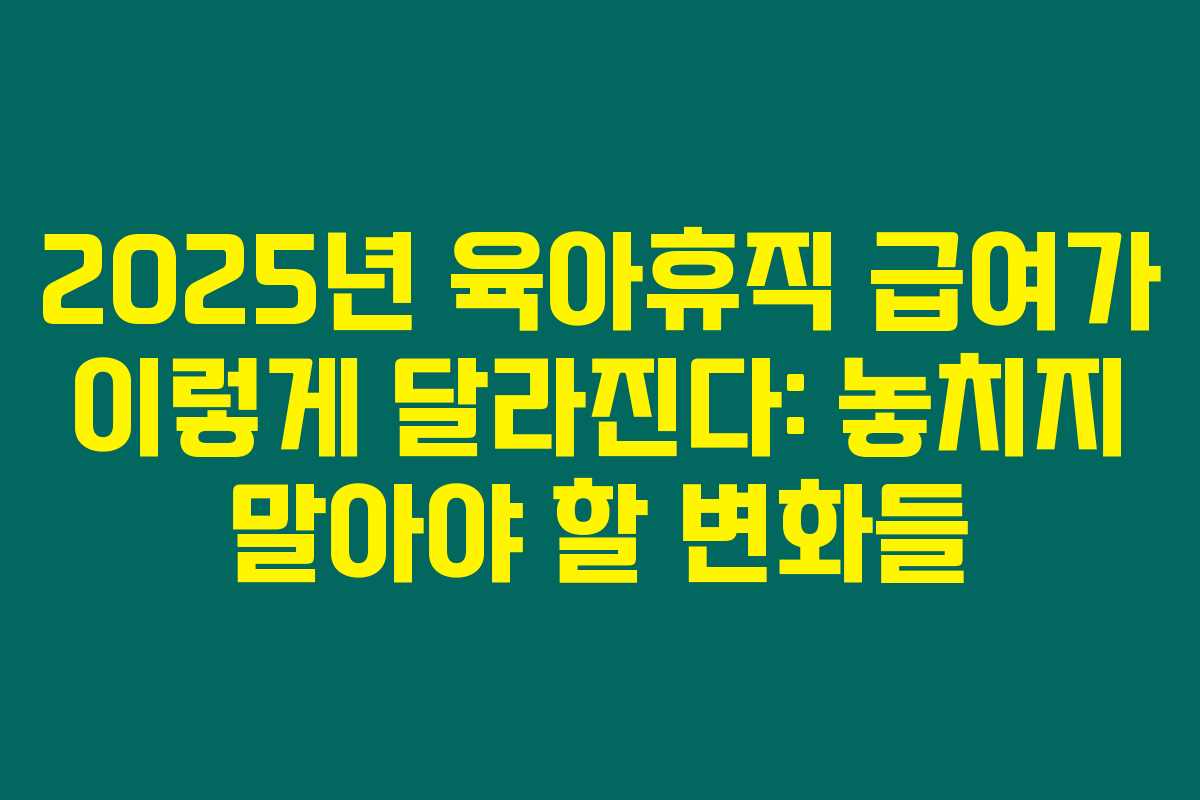 제가 직접 확인해본 결과로는, 2025년 육아휴직 급여의 조건이 크게 변경되었어요. 이는 부모님들에게 더 나은 육아 환경을 제공하기 위한 중요한 정책이랍니다. 이번 글에서는 육아휴직 급여의 변경사항과 그에 따른 이점들을 자세히 알아보도록 할게요.