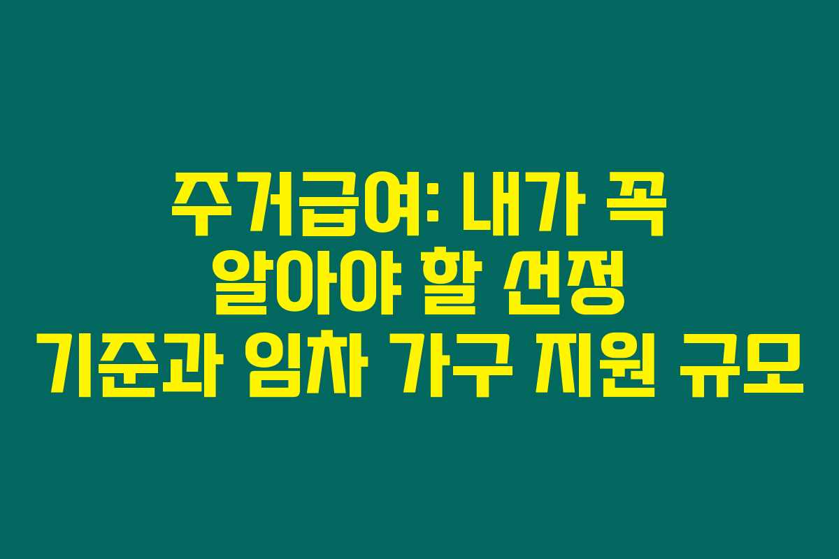 주거급여는 소득 및 재산 기준을 충족하는 저소득 가구에게만 지원됩니다.