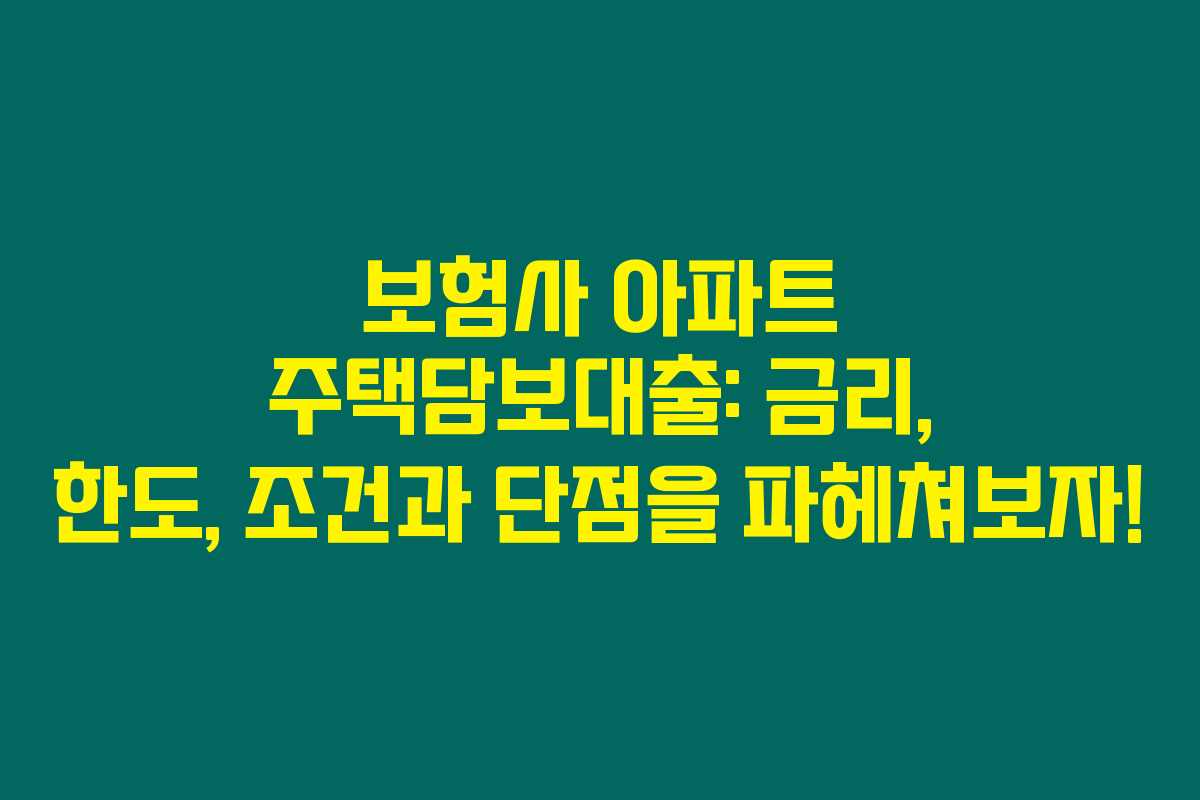 보험사 아파트 주택담보대출은 다양한 장점과 단점을 가지고 있어요. 무엇보다 금리에 민감한 분이라면 신중하게 선택할 필요가 있어요. 대출 조건과 한도를 면밀히 검토하고, 자신의 소득 상황에 맞는 최적의 상품을 찾는 것이 중요하답니다. 더 많은 정보가 필요하시다면 저의 블로그를 자주 찾아주세요!