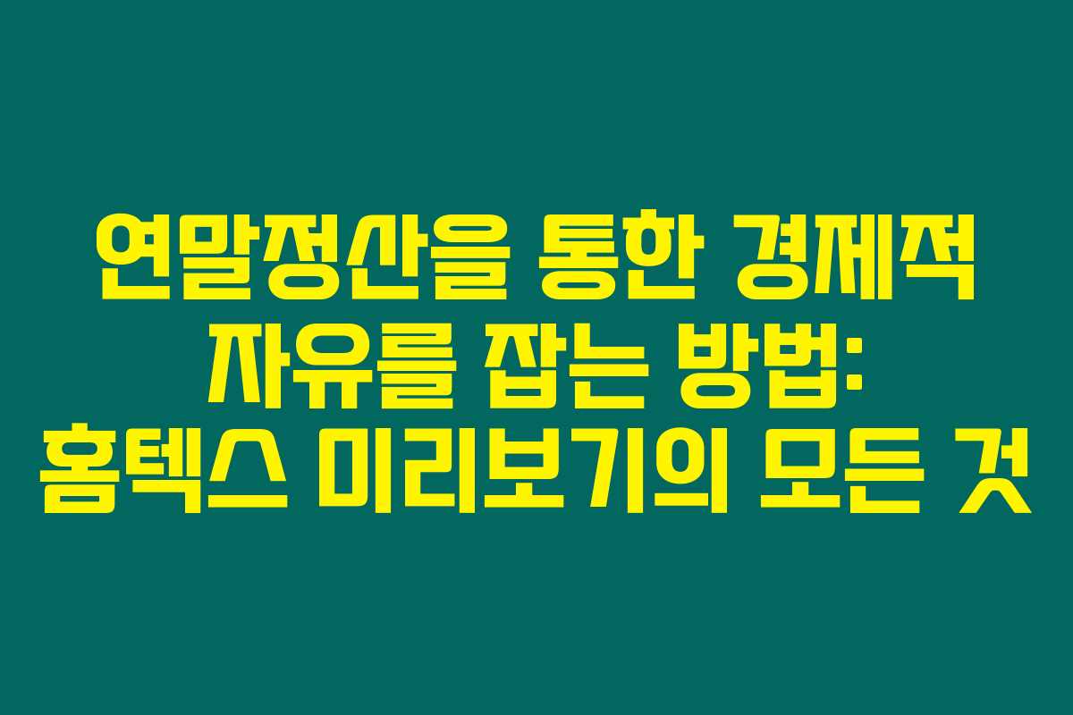 제가 직접 경험해본 결과로는, 연말정산을 잘 활용하면 경제적 자유에 한 걸음 더 다가갈 수 있습니다. 이번 포스팅에서는 연말정산에 관한 필수 정보를 제공하며, 홈텍스를 통한 미리보기 및 환급액 확인 방법에 대해 자세히 설명드리겠습니다. 이를 통해 소득세 돌려받는 기회를 놓치는 일이 없도록 하세요.
