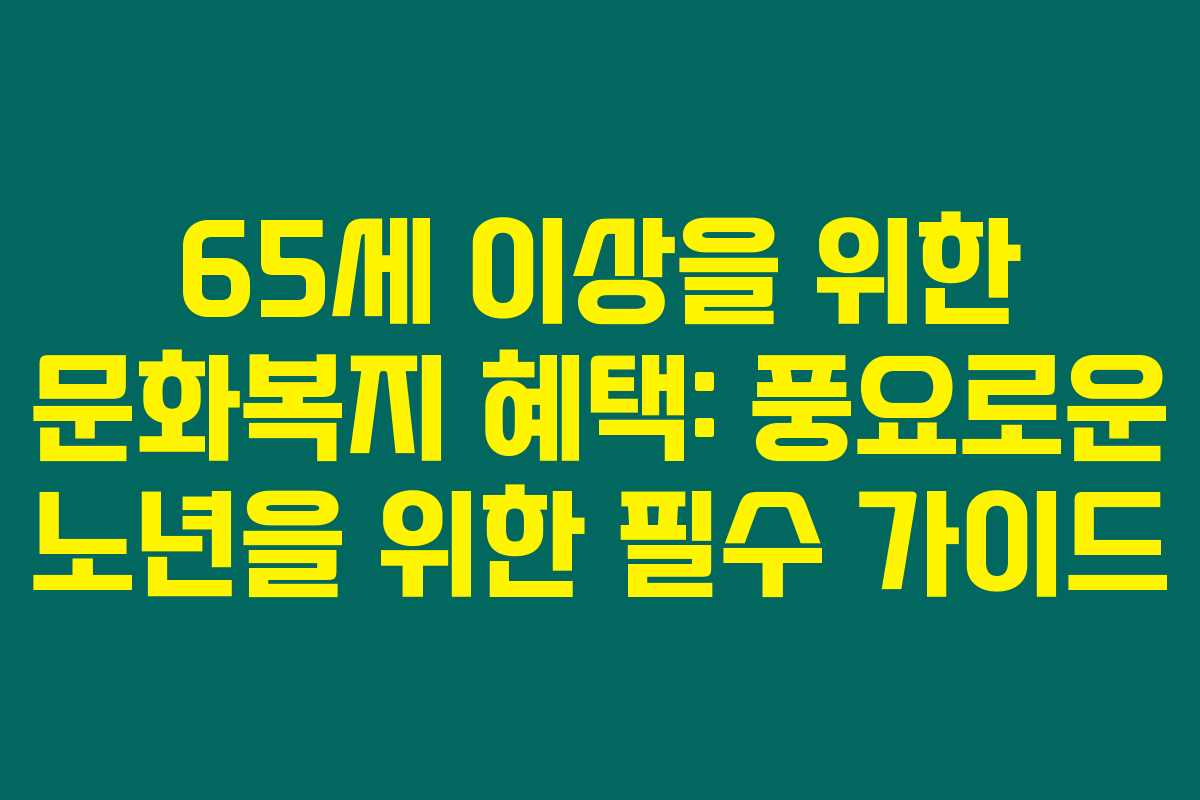 65세 이상 문화복지 혜택은 지역 구청이나 시청 웹사이트에서 확인할 수 있으며, 해당 기관에 직접 문의하면 더 많은 정보를 얻을 수 있어요.