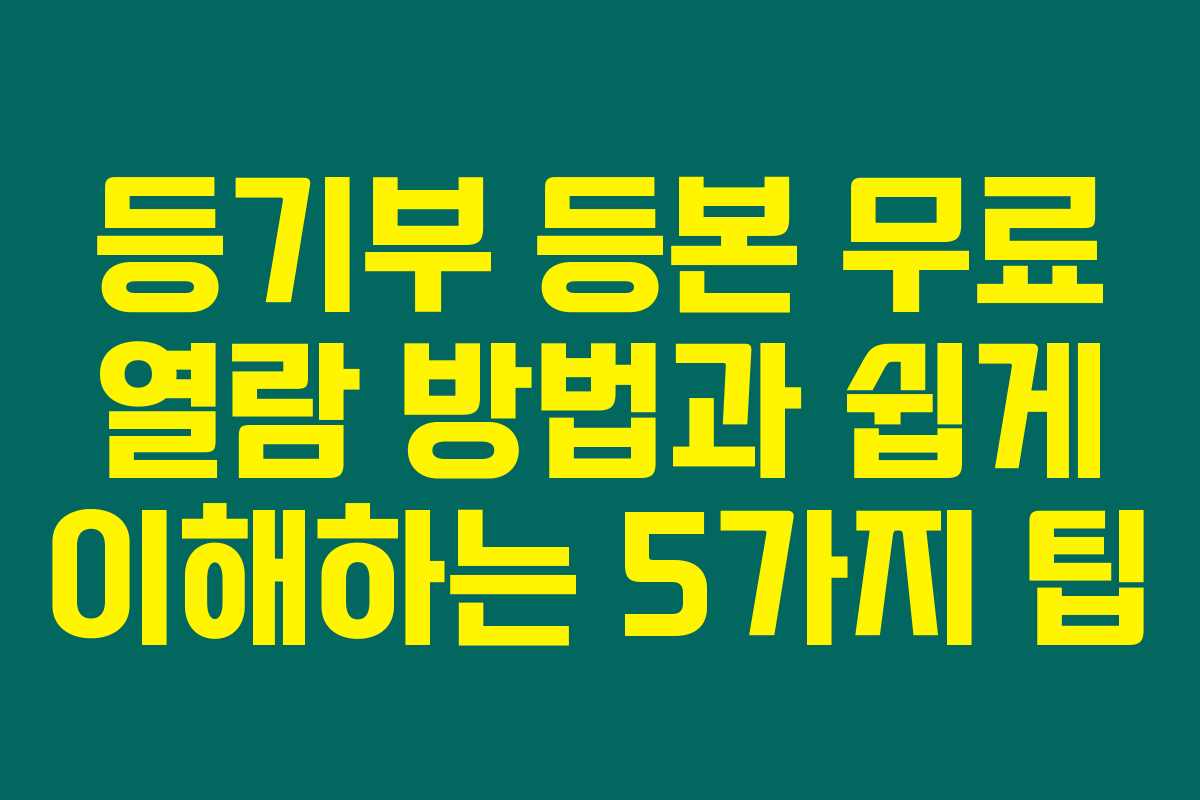 제가 직접 알아본 바로는, 부동산 거래 시 가장 중요한 서류 중 하나가 바로 등기부 등본입니다. 많은 사람들이 이 문서를 어떻게 열람하고 어떤 정보를 확인해야 하는지 잘 모르죠. 하지만, 무료로 간편하게 열람할 수 있는 방법이 여러 가지 있으니, 아래를 읽어보시면 넉넉히 이해할 수 있을 거예요.