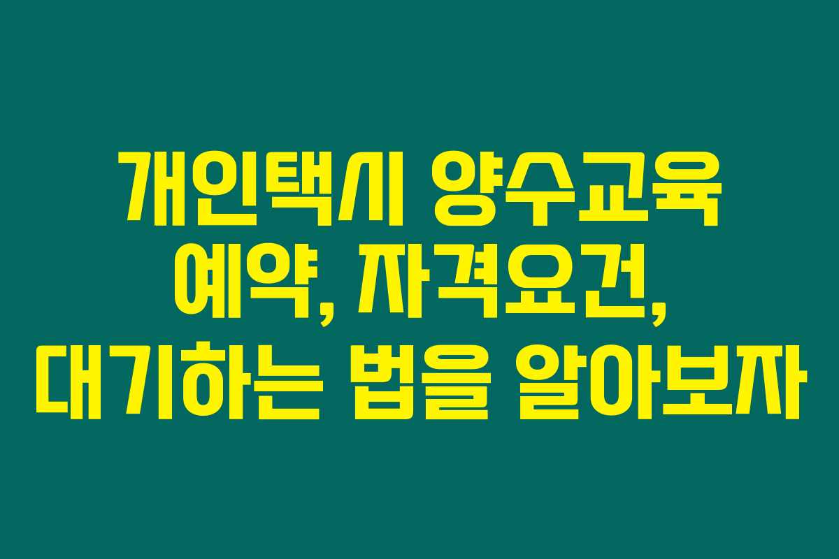 개인택시 양수교육, 자격요건, 예약 – 이 모든 과정이 성공적으로 이루어지길 바라며, 도움이 되셨으면 좋겠습니다.