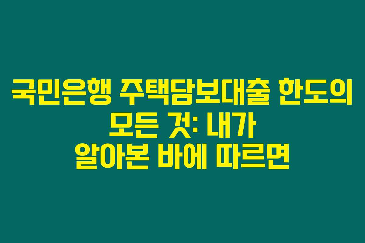 제가 직접 체크해본 바로는, 국민은행의 주택담보대출 한도는 주택 가격, 대출 이용자의 신용도, 소득 등 다양한 조건에 따라 달라집니다. 최근에 변화하는 금리와 정책에 따라, 이 한도의 이해가 더욱 중요해졌습니다. 아래를 읽어보시면 국민은행 주택담보대출의 한도에 대해 더욱 깊이 이해할 수 있을 것입니다.