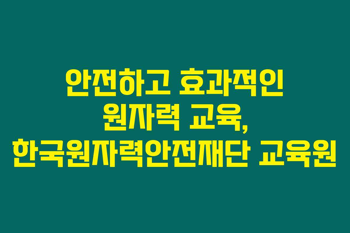 제가 알아본 바로는, 한국원자력안전재단 교육원은 원자력 안전과 관련된 다양한 교육 프로그램을 통해 방사선 안전 및 원자력 관련 지식을 강화하는 곳입니다. 원자력 분야에 관심이 있으신 분들께서는 아래를 읽어보시면 교육원의 기능과 제공되는 프로그램에 대한 유용한 정보를 얻으실 수 있습니다.