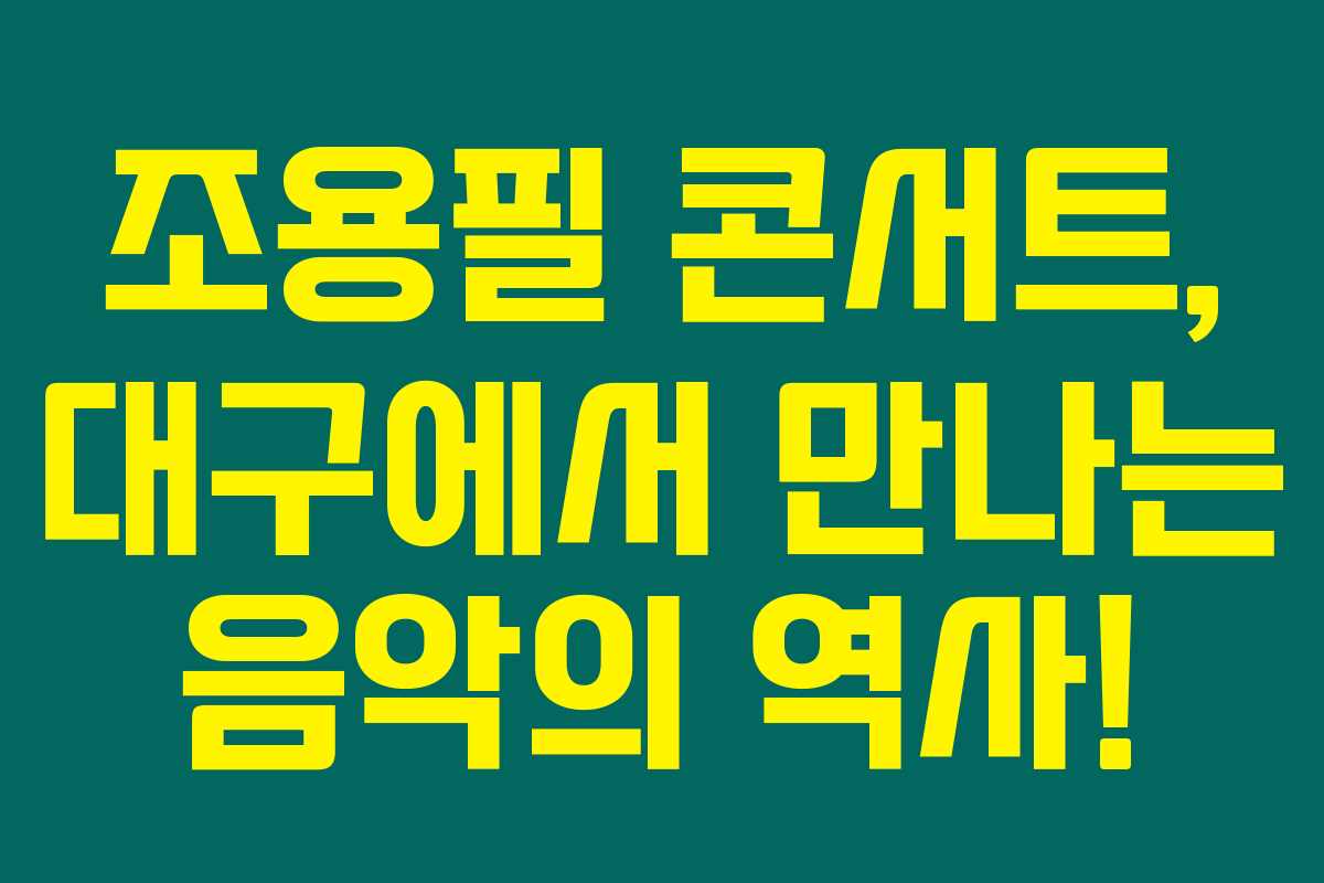 2023년 5월 27일, 대구에서 열리는 조용필 콘서트는 그가 쌓아온 놀라운 음악 여정을 한자리에서 보여줄 기회입니다. 고유의 감성으로 관객들을 매료시키는 그의 공연은 잊지 못할 경험이 될 것입니다. 아래를 읽어보시면, 콘서트의 안내와 함께 조용필의 음악 세계에 대해 깊이 알아가실 수 있을 거예요.