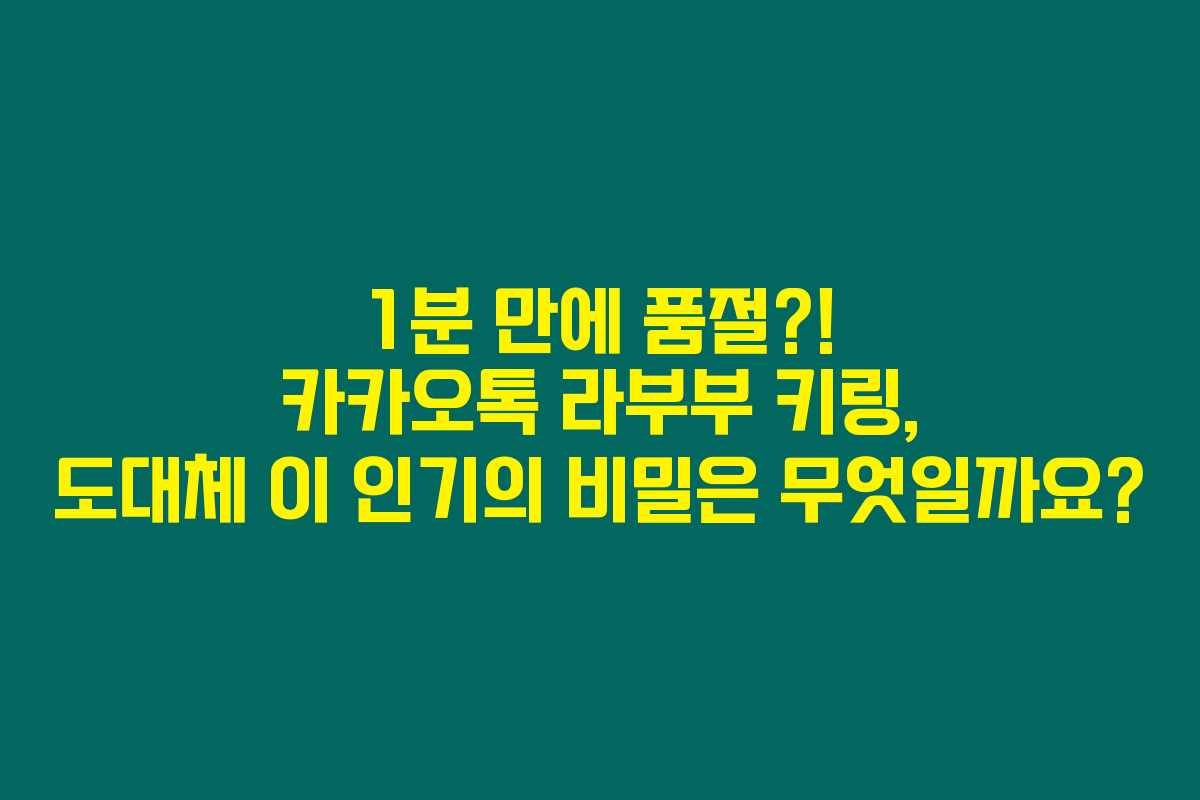 카카오톡 라부부 키링의 폭발적인 인기, 정말 궁금하지 않으신가요? 이 키링은 판매 시작과 동시에 수십만 명이 몰렸고 준비한 물량은 순식간에 소진되었습니다. 무엇이 라부부 키링을 이렇게 특별하게 만들어 주었을까요?