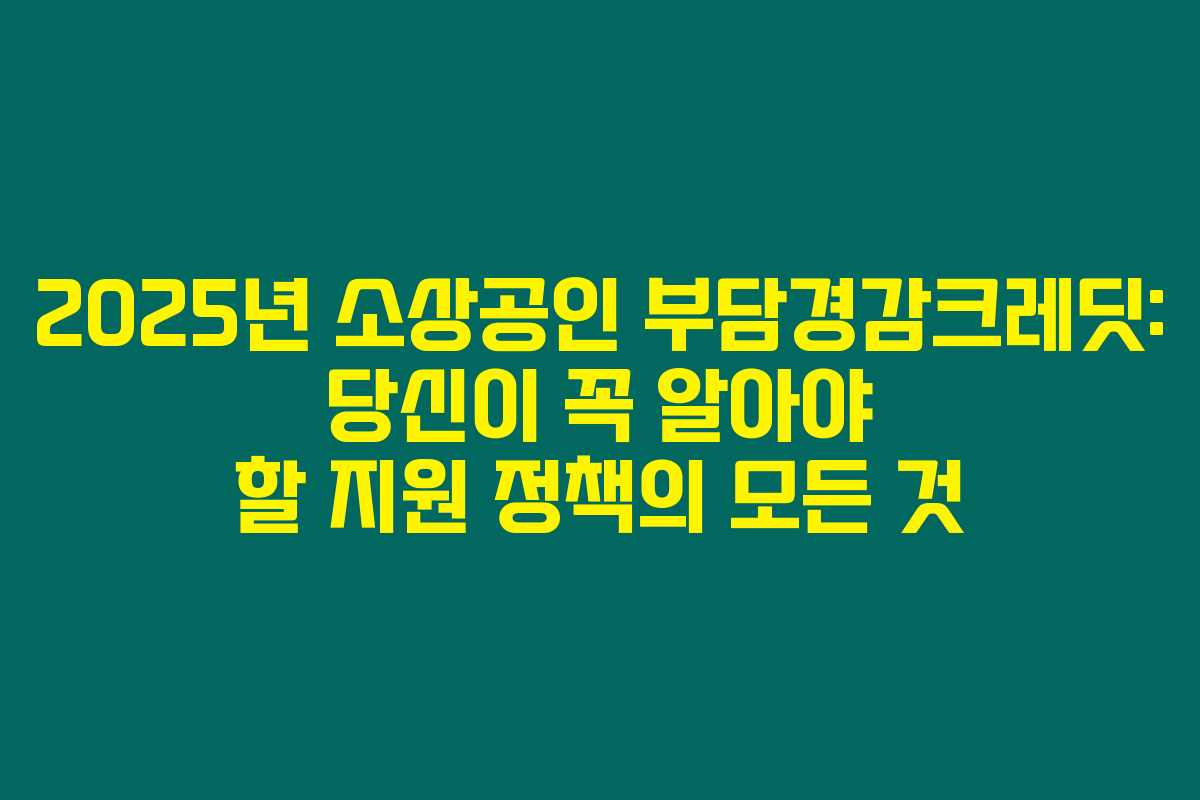 2025년, 소상공인을 위한 새로운 지원 정책인 ‘부담경감크레딧’이 등장합니다. 고물가와 경제적 어려움 속에서 소상공인에게 어떤 도움이 될지 그 내용을 함께 살펴보세요. 아래를 읽어보시면 이 정책의 주요 내용을 쉽게 이해할 수 있을 거예요.