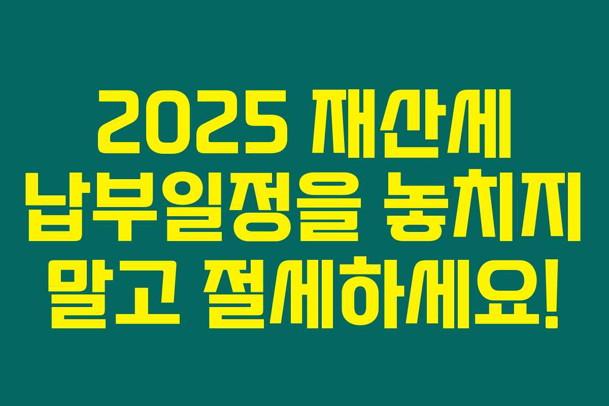 2025년 재산세 납부기간을 정확히 알고 계신가요? 재산세를 제때 납부하지 않으면 가산세가 붙을 수 있습니다. 아래를 읽어보시면 재산세 납부일정과 방법을 확실히 체크할 수 있을 거예요. 놓치면 손해인 정보를 한눈에 정리했습니다.