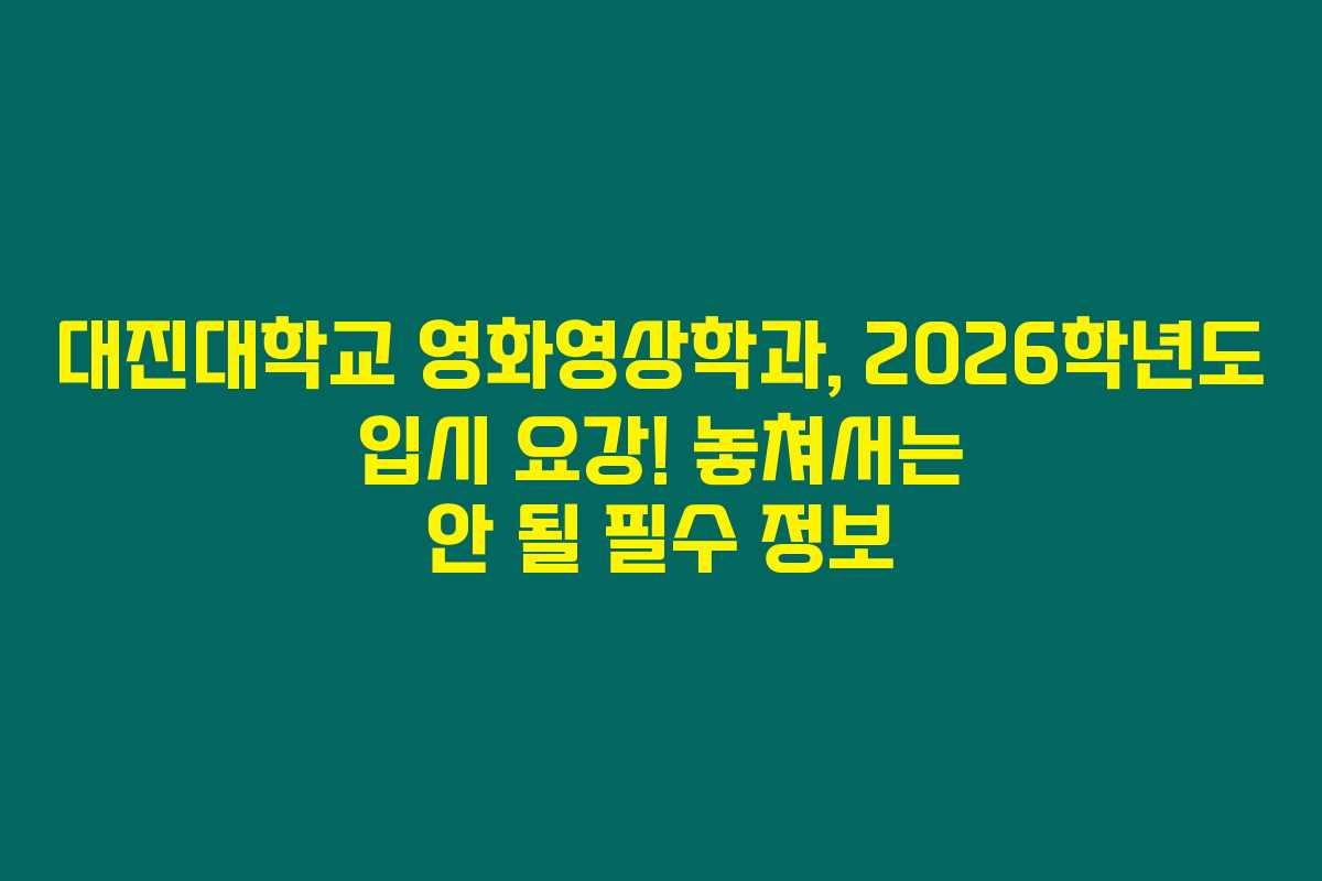 2026학년도 대진대학교 영화영상학과 수시/정시 모집 정보가 궁금하다면, 아래 내용을 반드시 확인해보세요. 최근 수많은 학생들이 영화수업에 열을 올리고 있지만, 실기 위주 전형에 대한 준비는 여전히 부족하답니다. 특히, 학과의 입시 경쟁률이 해마다 상승하고 있는 만큼, 철저한 준비가 필요해요.