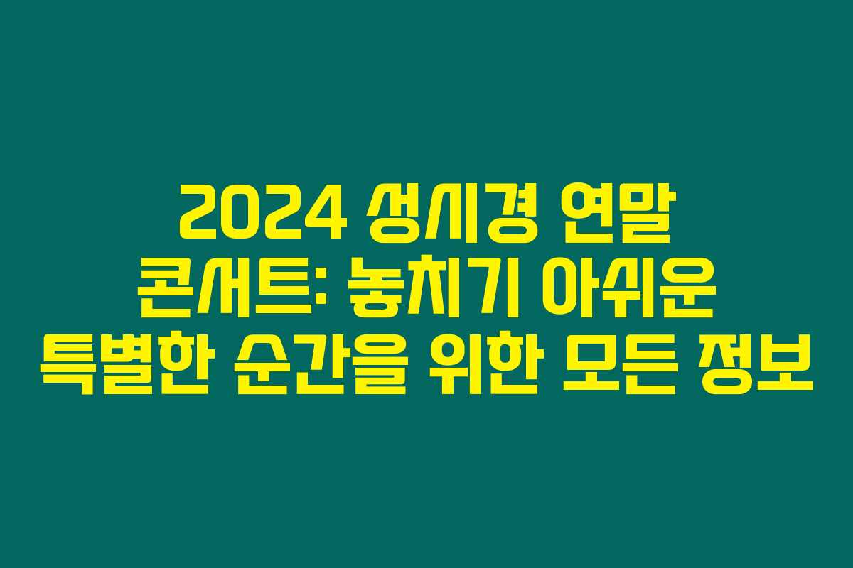 2024년 성시경 연말 콘서트는 관객들의 기대를 모으고 있어요. 펼쳐질 공연의 기본 정보는 아래와 같아요.