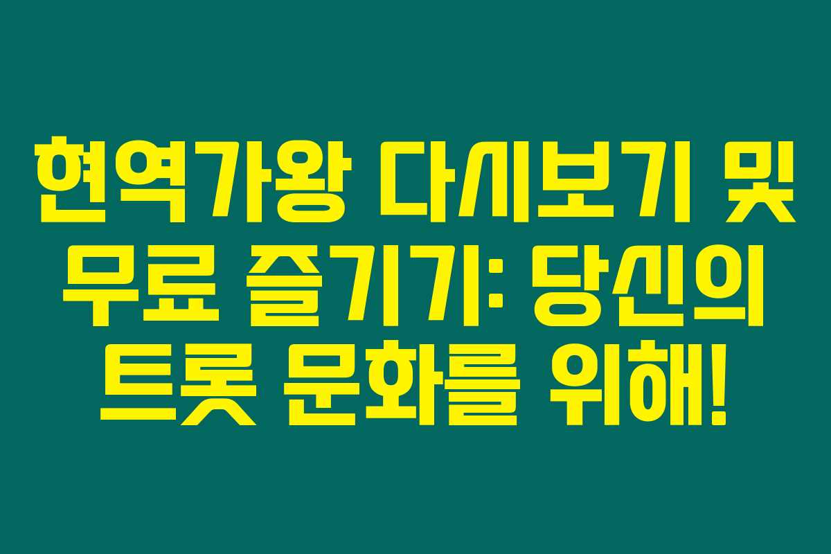 현역가왕은 매주 흥미진진한 경연이 펼쳐지며 시청률이 날로 상승하고 있는데요. 이 프로그램을 다시 보고 싶은 분들에게는 다양한 방법이 존재한답니다. 제가 직접 확인해보고 정리한 내용을 소개할게요.