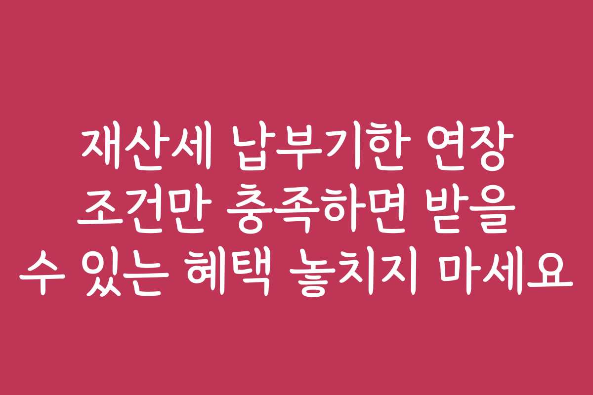 왜 재산세 납부기한 연장 조건이 중요한가?
