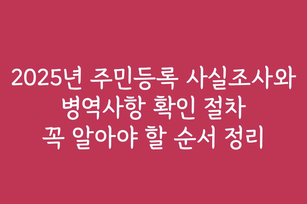 2025년 주민등록 사실조사와 병역사항 확인 절차 꼭 알아야 할 순서 정리
