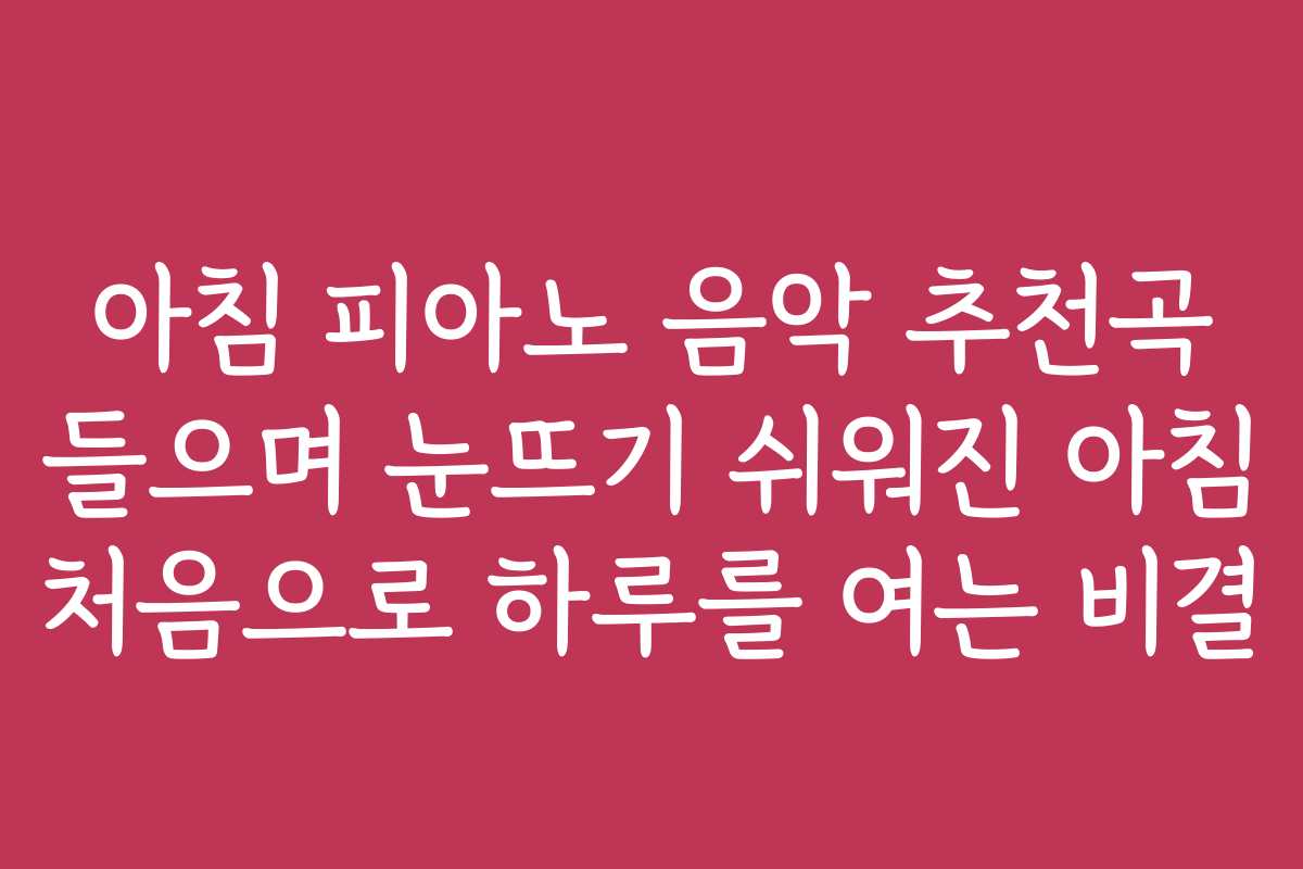 아침을 쉽게 여는 비결은 음악을 활용하는 것입니다. 다양한 아침 피아노 음악 추천곡을 듣다 보면 정신적으로도 편안해지고, 긍정적인 마음가짐으로 하루를 시작할 수 있습니다.