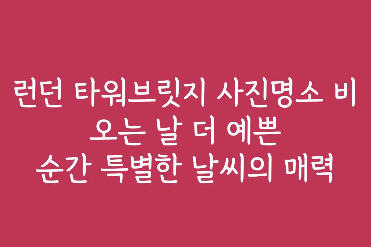 런던의 상징적인 타워브릿지, 비 오는 날 이곳의 아름다움은 어떻게 다가올까요? 특별한 날씨 속에서만 만날 수 있는 경이로운 순간들을 사진으로 남기고 싶다면, 미리 알아두어야 할 몇 가지 팁이 있습니다. 비 오는 날의 매력을 극대화하려면 이 글을 계속 읽어보세요.