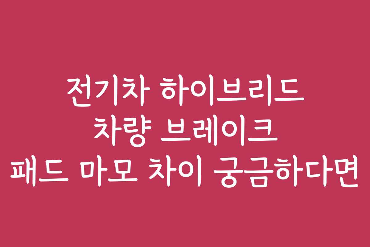 전기차 하이브리드 차량 브레이크 패드 마모 차이 활용법 및 실전 팁
