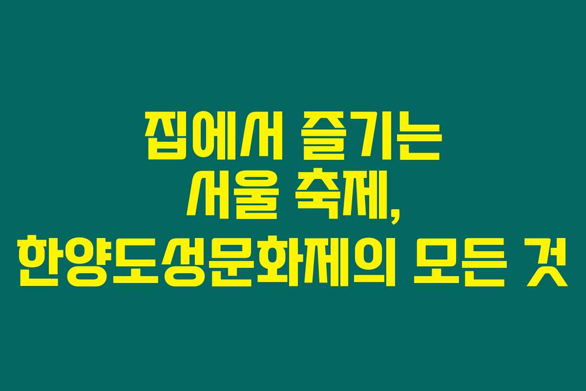 서울에서 열리는 한양도성문화제를 참여하고 싶지만, 방구석에서 나가기 힘든 사람들을 위한 지침이 필요하다면 아래를 읽어보세요. 집에서도 안전하고 편안하게 참여할 수 있는 방법을 소개할게요. 온라인으로도 즐길 수 있는 다채로운 프로그램이 준비되어 있으니 놓치지 말고 체크해보세요!