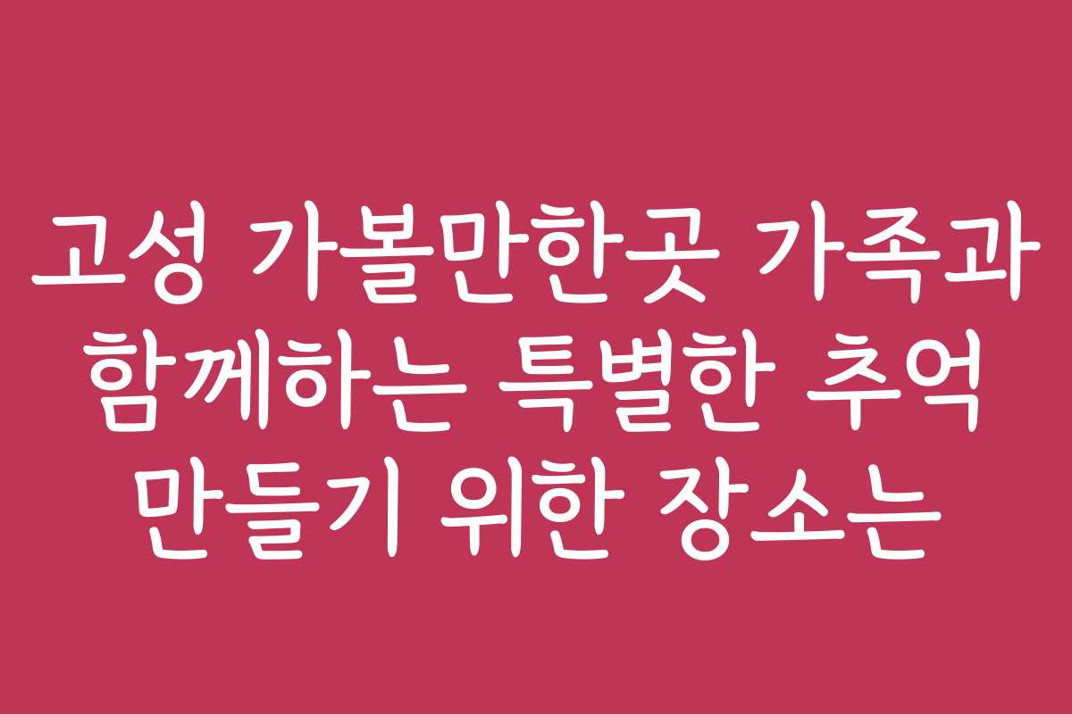 가족과 함께 특별한 추억을 만들고 싶지만 어디를 가야 할지 고민이신가요? 고성은 아름다운 자연과 다양한 활동으로 가득 찬 곳입니다. 이번 포스트에서는 고성에서 가족과 함께 추억을 남길 수 있는 최적의 장소들을 소개합니다. 아래를 읽어보시면 가족 여행 힌트를 얻을 수 있을 거예요.
