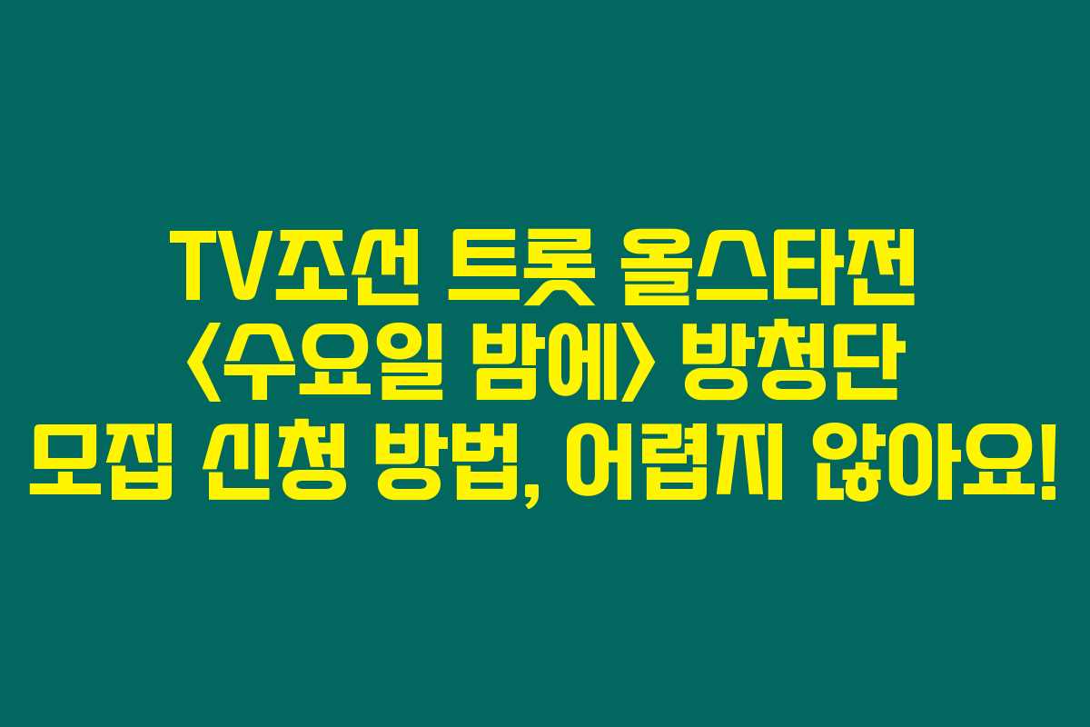 혹시 TV조선의 트롯 올스타전 <수요일 밤에> 방청신청이 어려워서 고민하고 계셨나요? 이 프로그램에 대한 열렬한 사랑이 있지만 신청 절차가 복잡해서 망설였던 분들이 많을 거예요. 그런 여러분을 위해, 아래를 읽어보시면 방청 신청 방법을 아주 쉽게 설명드릴게요.