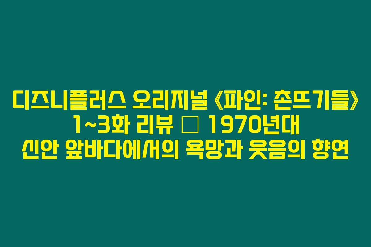 디즈니플러스 오리지널 시리즈 《파인: 촌뜨기들》을 기다리고 있던 분들이라면, 1~3화를 통해 새로운 재미의 세계로 발을 들여놓을 준비가 되어있으시지요? 그러니, 만약 당신이 ‘파인: 촌뜨기들’을 통해 진짜 촌뜨기들의 욕망과 웃음을 동시에 즐기고 싶다면, 아래를 읽어보세요. 방금 방영된 1~3화에서 어떤 매력이 담겨 있는지 자세히 알아봅시다!