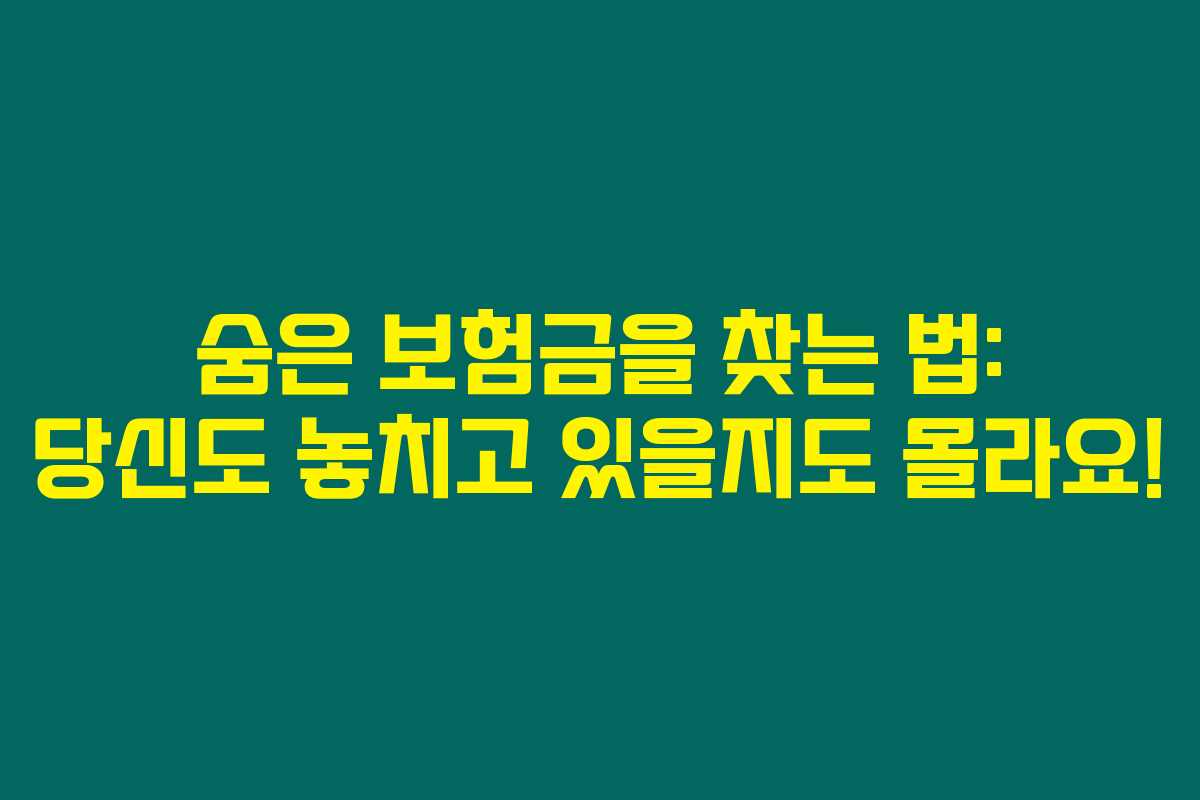 이제는 여러분도 꼭 숨은 보험금을 찾아보시고 절대 잊지 마세요. 들어보셨겠지만 어쩌면 예상치 못한 금액이 기다리고 있을지도 모른답니다.