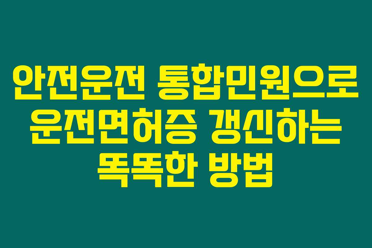 운전면허증 갱신이 다가오고 있다면 아래를 읽어보시면 필요한 모든 정보를 확인할 수 있습니다. 운전면허증을 갱신해야 하는데 어떤 방법이 가장 효율적일까요? 이 글에서 안전운전 통합민원 활용법과 간편한 온라인 신청 방법을 알아보세요.
