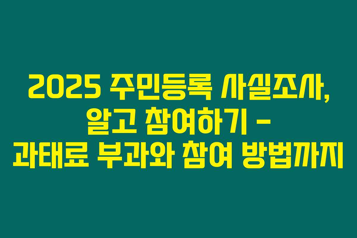 2025년 주민등록 사실조사를 준비하고 있나요? 주민등록 사실조사에 참여하지 않으면, 불이익이 클 수 있어요. ‘이 조사에 참여하지 않을 경우 과태료까지 부과된다면, 어떻게 해야 할지 고민이 되지 않으신가요?’ 아래를 읽어보시면, 주민등록 사실조사의 대상과 절차 및 참여 방법을 잘 이해하고, 과태료를 피하는 데 꼭 필요한 정보를 얻을 수 있을 거예요.