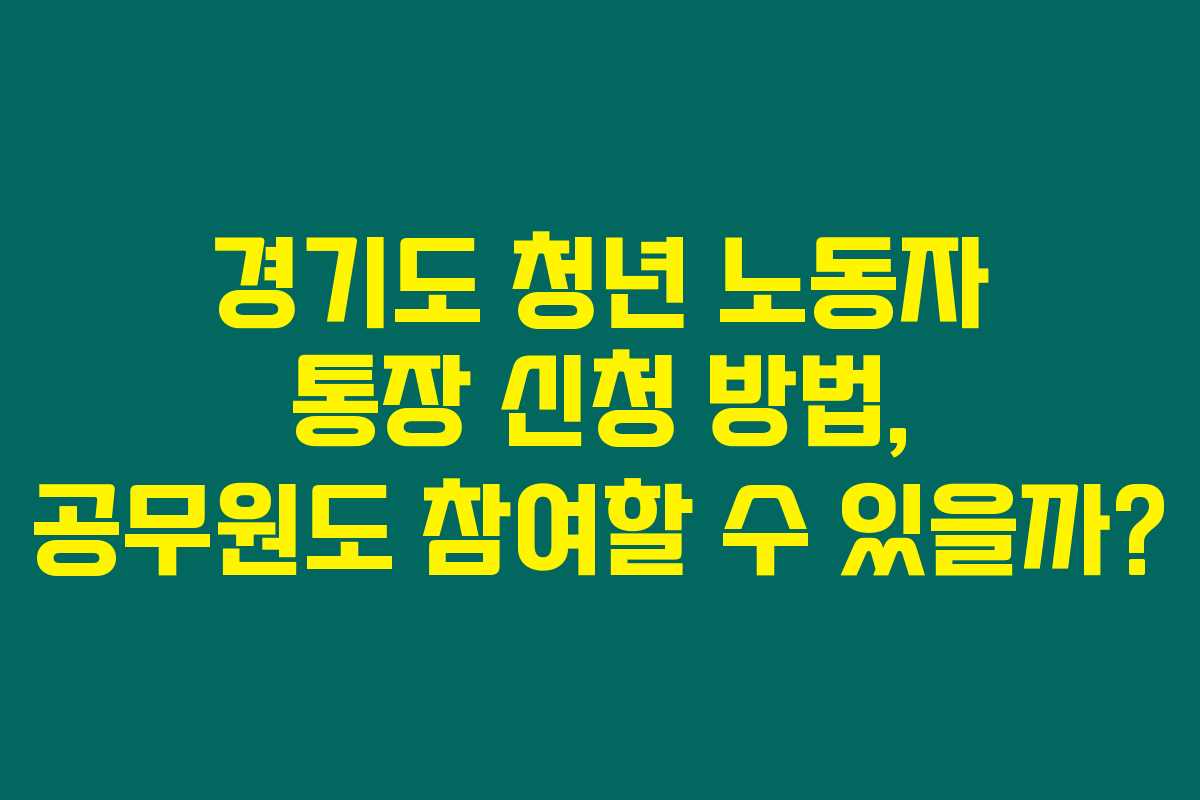 경기도 청년 노동자 통장은 정말 도움이 되는 기회에요. 특히 경기도에 거주하는 청년이라면 이를 놓치지 말아야 해요. “공무원도 이 통장에 신청할 수 있을까?”라고 궁금하실 분들도 있을 텐데요. 아래를 읽어보시면 이 통장에 대한 정보와 신청 방법, 그리고 공무원의 참여 가능성에 대해 알아볼 수 있어요.