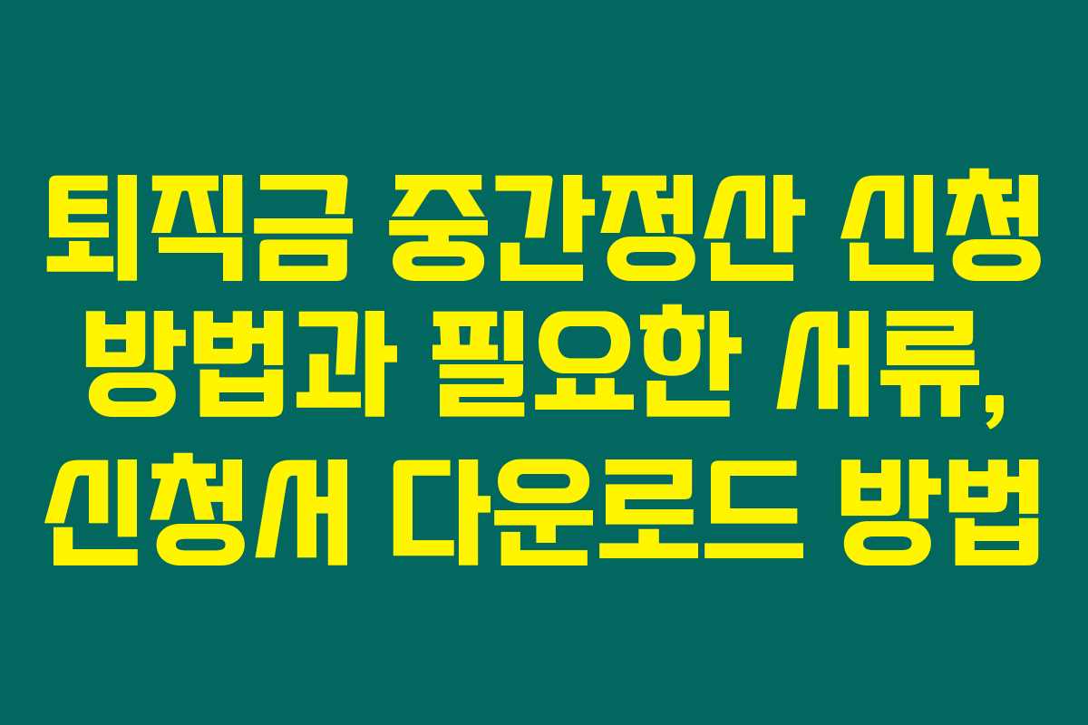 퇴직금 중간정산을 알아보고 계신가요? 퇴직금을 중간에 정산받고 싶다면 몇 가지 절차를 꼭 알아야 해요. 혹시 퇴직금 중간정산이 어떤 건지 잘 모르신다면 오늘 이 정보를 확인하고 당신의 권리를 제대로 지켜보세요! 아래를 읽어보시면 퇴직금 중간정산 신청 방법과 필요한 서류를 상세히 안내드립니다.