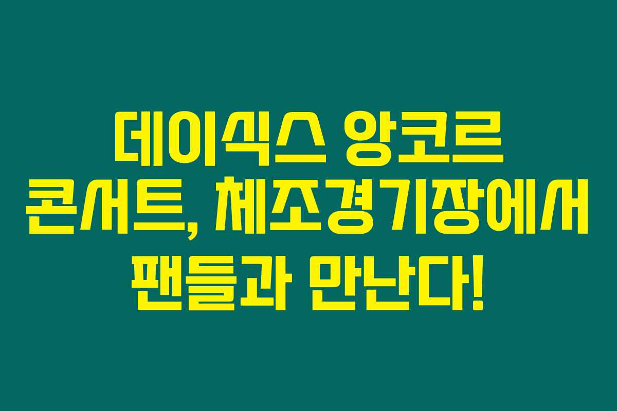 데이식스의 2025년 5월 체조경기장 공연은 한국 팬들과의 특별한 순간을 만들어줄 거에요. 최신 소식을 계속 업데이트해 드릴 테니 여러분도 기대해 주세요!