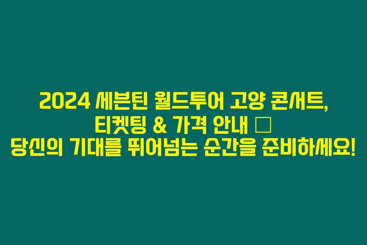 2024년 세븐틴 월드투어가 고양에서 열리는 것을 기다리고 있는 팬 분들에게 특별한 소식을 전해드릴게요! 세븐틴은 ‘SEVENTEEN RIGHT HERE WORLD TOUR IN GOYANG’을 통해 10월 12일부터 13일, 고양종합운동장에서 엄청난 무대를 선보일 예정이에요. 이번 공연에서는 신곡과 함께 그들의 매력을 더욱 많을 팬들과 나눌 수 있답니다. 그렇다면 티켓팅 방법과 가격에 대해 아래를 읽어보시면 필요한 정보를 쏙쏙 발견할 수 있을 거예요!