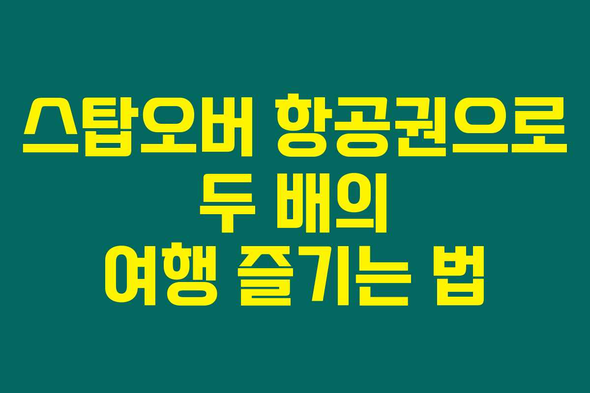 스탑오버 항공권을 잘 이용하면 시간을 절약하면서도 여행의 재미를 두 배로 느낄 수 있으니, 다음 여행 계획 시 꼭 고려해 보세요! 각종 항공사 혜택을 활용해 다양한 도시에서 저렴하게 경유할 수 있는 기회를 꼭 잡아야겠다구요!