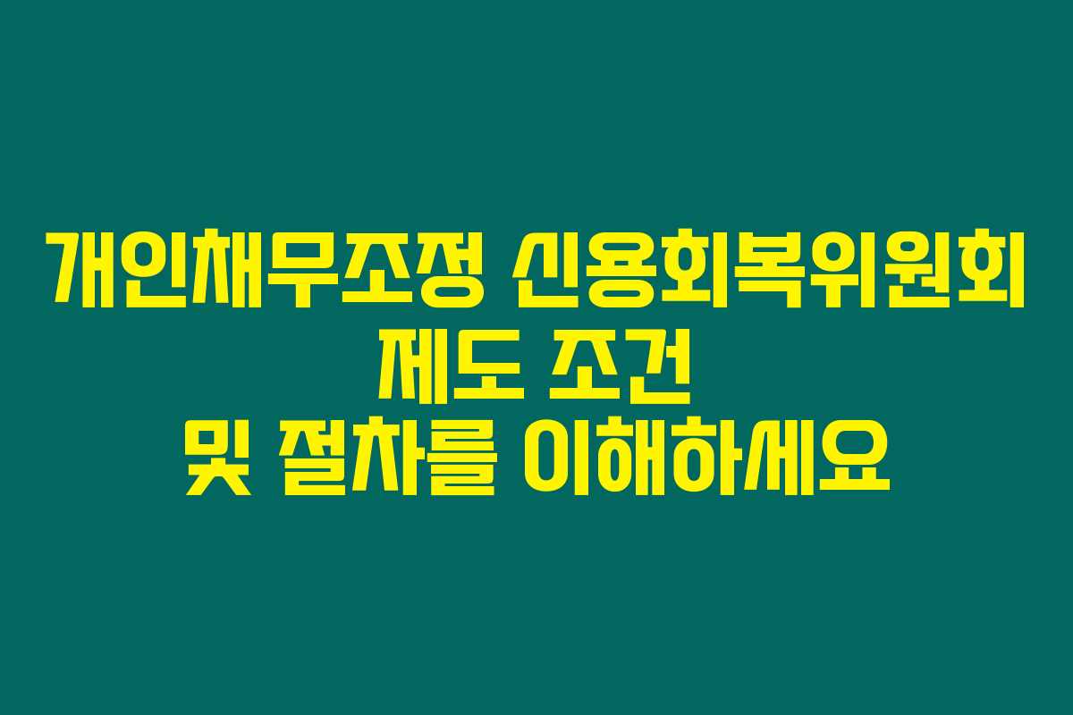 개인 부채 문제로 고민하고 있다면, 개인채무조정 신용회복위원회 제도에 대해 알아두는 것이 꼭 필요해요. 채무가 많아 고민 중인 분이라면, 아래를 읽어보시면 신속하고 정확한 해결 방법을 찾을 수 있을 거예요.